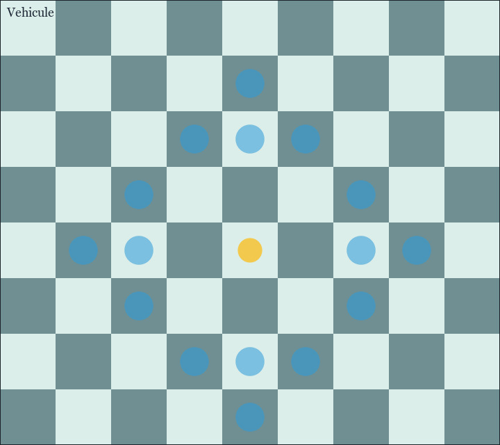 - Il peut aussi avancer, reculer ou se déplacer latéralement de 2 ou 3 cases.